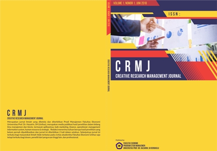 The Scientific Journal "CREATIVE RESEARCH MANAGEMENT JOURNAL" is managed and published by the Management Study Program, Faculty of Economics and Business, University of Prof. Dr. Hazairin, S.H. This is a publication media for research results in the field of management and business science, including its applications, both in marketing, finance, operations, management information systems, human resources & strategy. Editors get articles in the form of research results that have never been visited and this journal is published twice a year (June and December). Furthermore, this journal is open to the scientific community, not limited to the academic community of the Faculty of Economics and Business, Prof. University. Dr. Hazairin, S.H but open to all lecturers, researchers from other universities, and professionals.