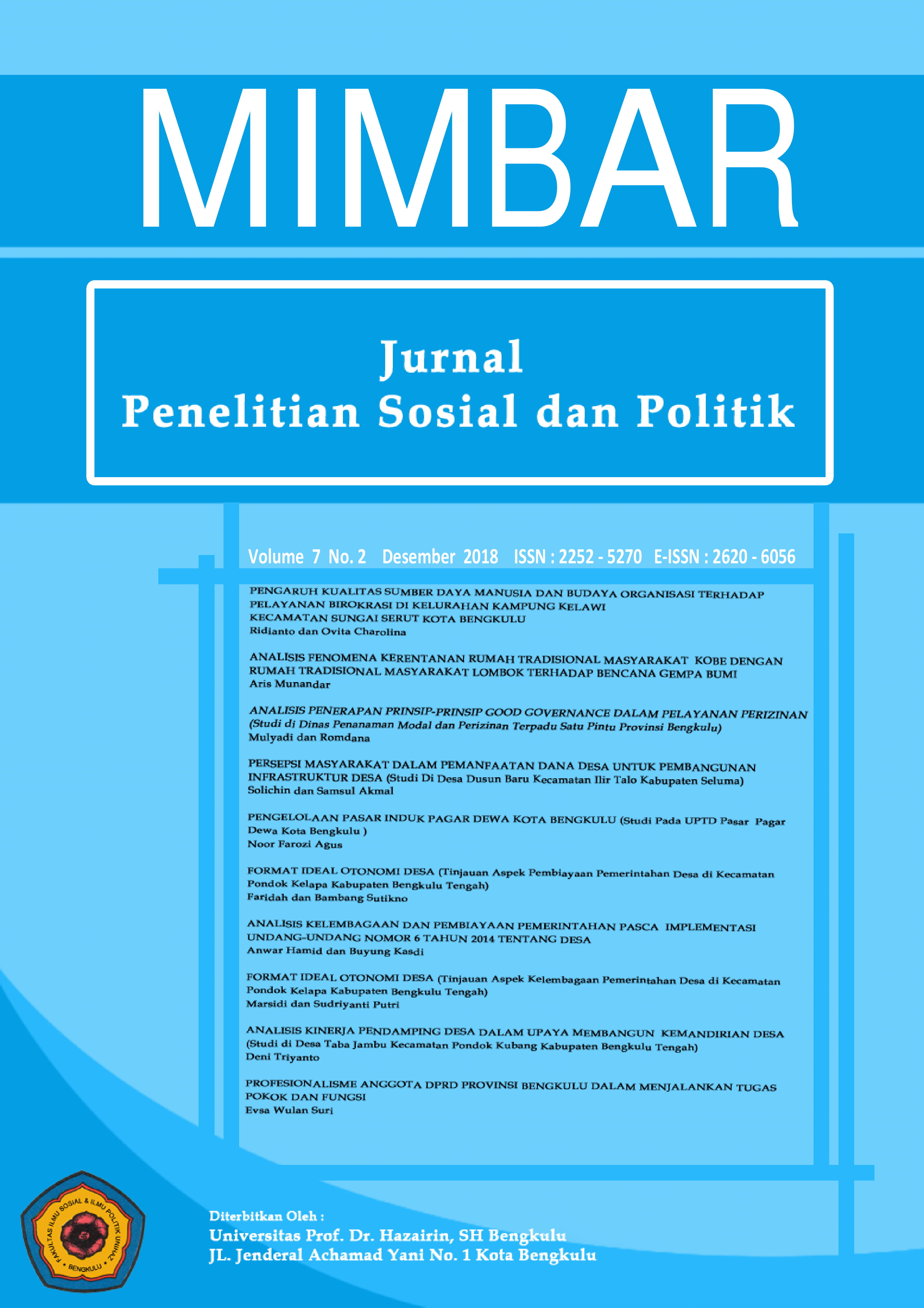 Vol. 7 No. 2 (2018): Mimbar : Jurnal Penelitian Sosial dan Politik (Desember)